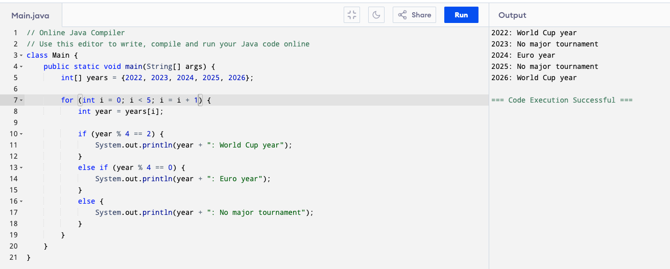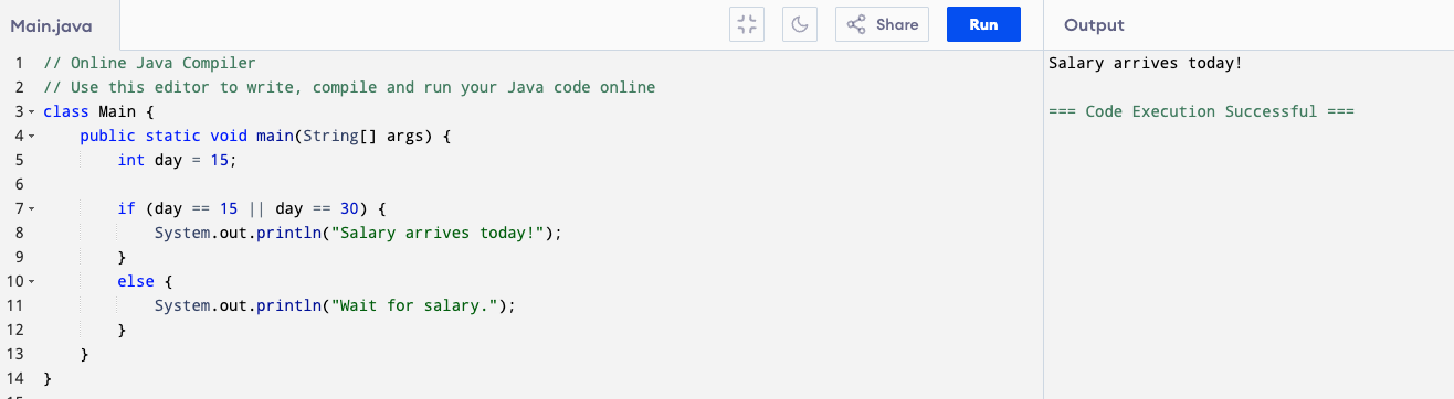 Conditionals (if else, switch): Make decisions, using if or switch statements. For example: