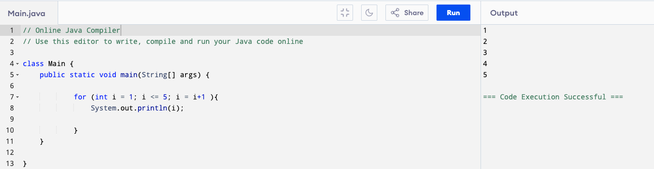 This repeatedly prints “Count: “ and the value of i. But i starts at 1 and increases by 1 at each iteration of the loop. The loop only runs as long as i is <= 5, so it prints: